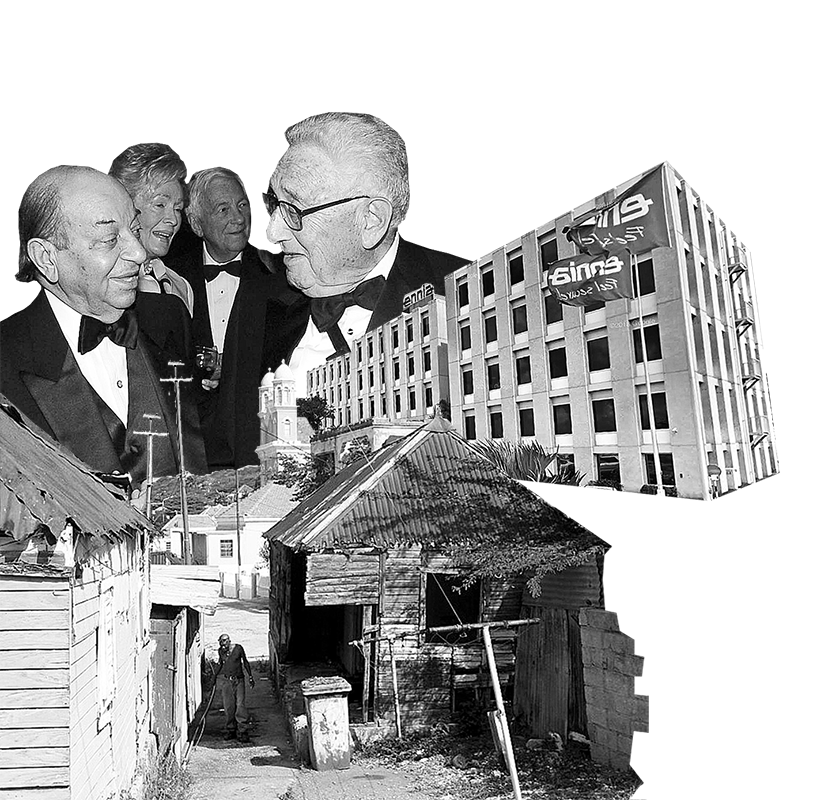 A Ennia é a maior seguradora das Caraíbas neerlandesas, oferecendo desde seguros automóveis a planos de pensões. Em 2006, a empresa foi comprada pelo bilionário do petróleo, irano americano, Hushang Ansary. Nos anos seguintes, através de sociedades fictícias e transacções complexas (incluindo dividendos, bónus, pagamentos a trabalhadores inexistentes, aquisições de outras empresas e o uso dispendioso de jactos privados), Ansary e a sua equipa drenaram a Ennia em várias centenas de milhões de dólares. A companhia ficou à beira do colapso, colocando em risco as pensões de cerca de 30 mil pessoas.[2]